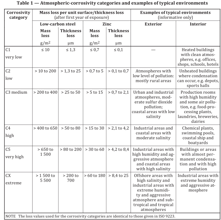 等級劃分:共6類(C1~C5+CX),字母C是“Corrosivity(腐蝕性)”的縮寫;