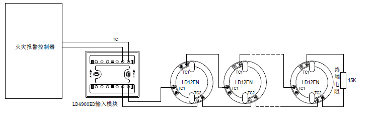 四、利達JTY-GF-LD3000E(F)點型光電感煙火災探測器(非編碼)接線示意圖